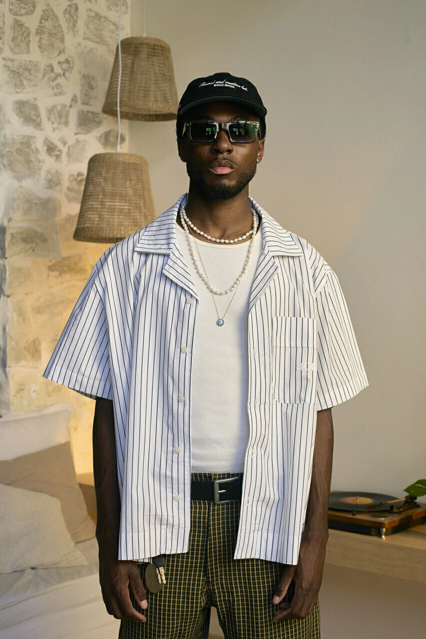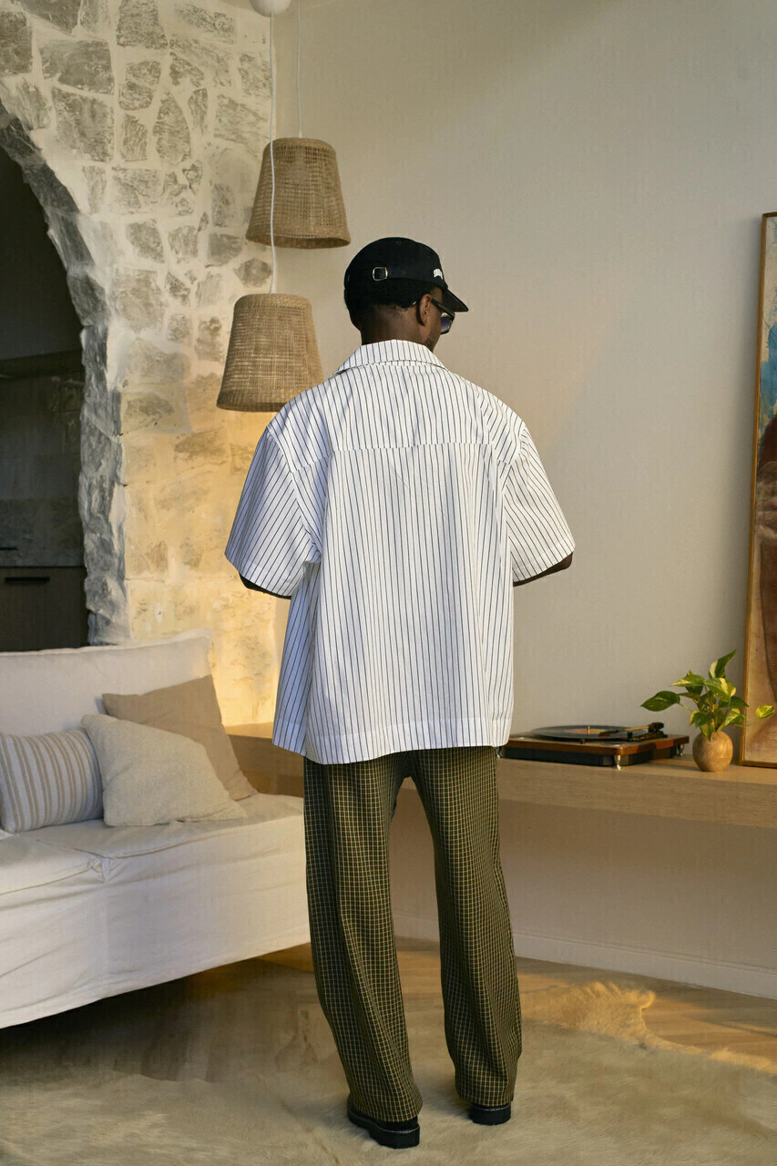 · Camisa manga curta de botão em tecido 75% poliéster 25% viscose  - 279gsm